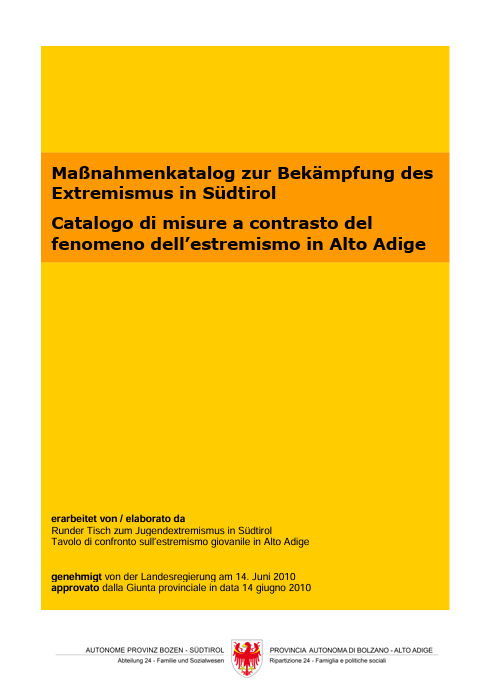 : : Download Erhebung - Extremismus in Südtirol 1.7.2019 Im Juli 2009 hat die Landesregierung beschlossen, einen R...